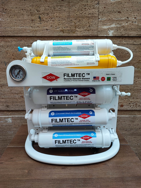انواع فیلتر: فیلتر مرحله 1 PP- فیلتر مرحله 2 کربن- فیلتر مرحله 3 PPمیکرون- مرحله 4 ممبران 13 لایه 75 گالن- مرحله 5 پست کربن- مرحله 6 مینرال