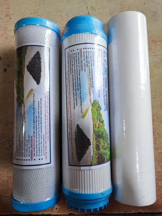 فیلتر مرحله 1 pp برای جذب ذرات درشت و زنگابه و آهک و گل و لای آب مرحله 2و 3 کربن برای حذف بو طعم و کلر آب